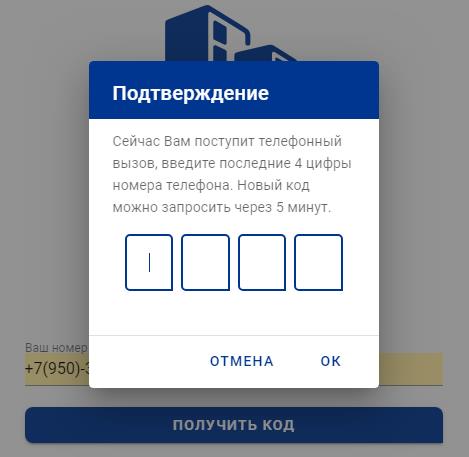 4. Нажмите кнопку «Получить код». На ваш телефон поступит вызов с неизвестного номера.